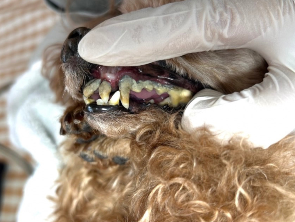 わんちゃんは虫歯になりにくい代わりに歯垢が歯石に変わりやすいです。